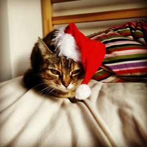 Ho Ho No! This is our festive cat Ninia, a recent member of the diaspora.