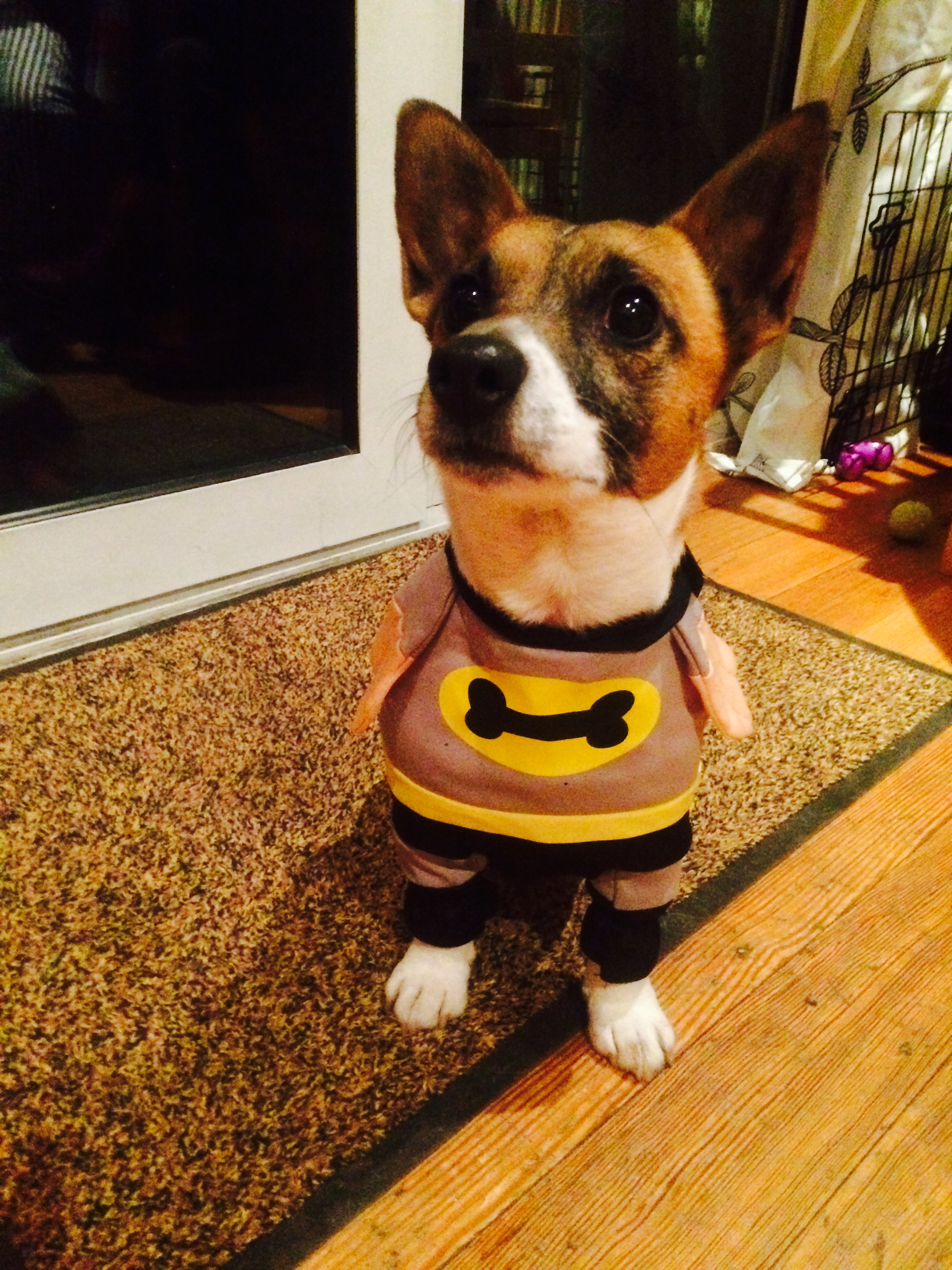 This is our rescue dog Jake, we only have him about 7 weeks and we love him to bits.. The friendliest, most loving, and best Crimbo jumper-wearing dog I ever saw. He’s also Batdog by night. Well, for Halloween night anyway.