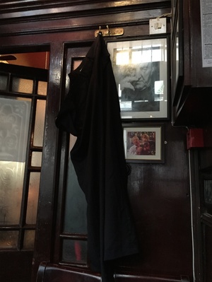 The nerve of them hanging a pair of trousers on a coat hook!