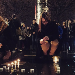Members of the French community and Irish friends gathered at the Spire on O’Connell Street to mark the deaths at the raid on Charlie Hebdo magazine Paris today.