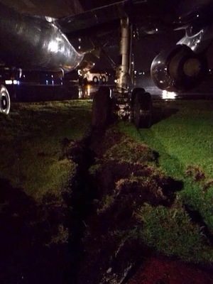 While taxiing towards the runway last night, the pilot of LH 543 [to Frankfurt] managed to undershoot the turn and get our plane stuck in the mud. Currently 18 hours into what we’re told will be a 30-hour delay, at least. Expected a much more efficient service from Lufthansa in fairness.