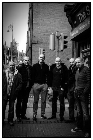 Shaven-headed male staff from ad agency DDFH&B Dublin this morning (top) and (above) with dyed female staff.
