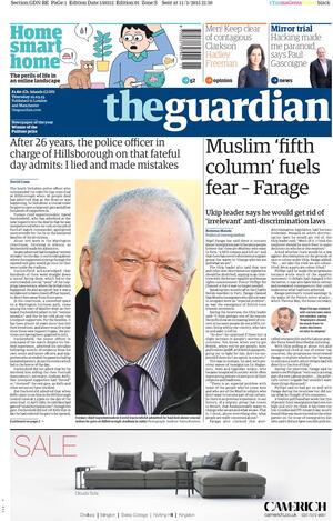 Difficult to find coverage of the Hillsborough police officer admission in the English Sun.