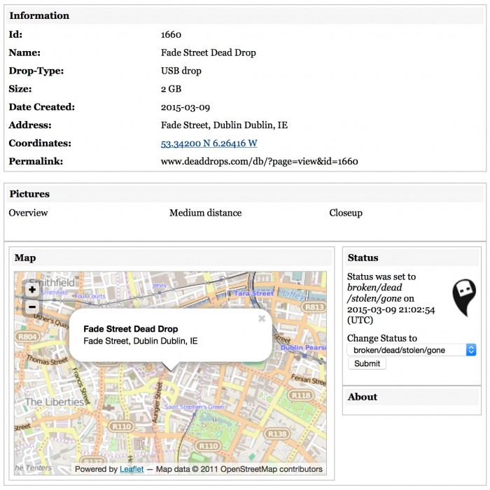 Followed one of those silly “Suggested Stories” links on FB and found this [a story on Boredom Therapy last month exploring the interesting phenomenon of offline file-sharing communities that secrete ‘dead drop’ USB drives in public places around the world. The first five were installed in Brooklyn by artist Adam Bartholl in 2010.]