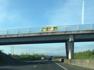 Hanging from the R121 bridge over M2 southbound – are #MarRef signs allowed on motorways?