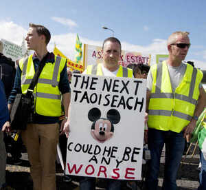 You need to have a long hard look at yourself if you continue to back a government whose only purpose is to maintain the status quo. We live in a terribly divided society and those tasked to govern us rather than make it a more equal and inclusive place have divided us again and again. The Local Property tax. The Universal Social Charge. The Water tax. This is corrosion not good government. They have have chosen the road of least opposition in Europe because they don’t have the intelligence to find an alternative. We were promised reform and a halt to unfair repayments to bondholders “not one more red cent”. Our elected representatives have failed us, they are the problem. They haven’t guided us through a crisis, there is no sure hand on the tiller. We are rudderless and all at sea. There will be an election by November. Replace them