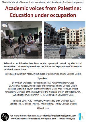 Academics for Palestine [Irish-based scholars supporting Palestinian academics and students] will host a discussion on the state of higher education in Gaza.
