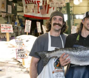 President Higgins and Sabina with two high-spirited unnamed market stall holders during Squee’s visit to Seattle and California.