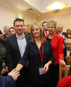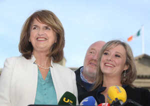 Maria Cahill (centre) with Labour Party deputy leader Alan Kelly (left) and Senator Ivana Bacik (right) following Ms Cahill’s ‘election’ as Senator.