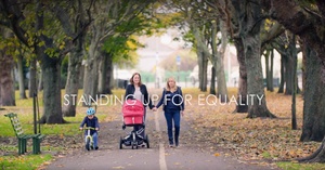 The ad shows a young same-sex female couple and their young children happily facing into an Ireland where they are treated as equals.