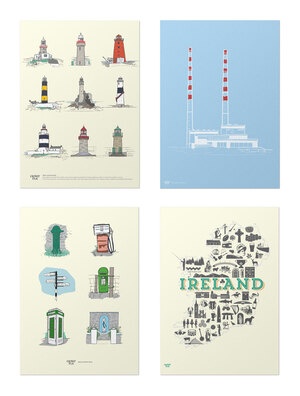 New designs in our print collection include:I rish Lighthouses; Dublin Shop fronts; Irish Country Drive; Ireland Icons; Street lamp