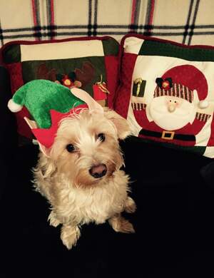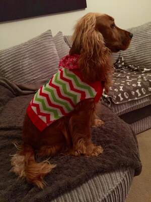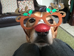 Nimmo the red nosed ‘reindog’. Quite a few treats went into the creation of this festive pose.