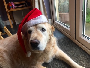 Jack (top) outraged by the indignity of it all. Sam (above) getting his Christmas on.