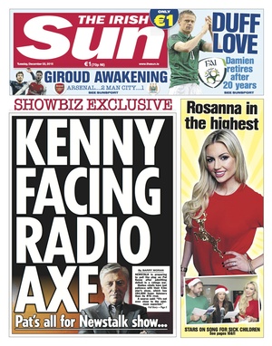 Just got it. It’s a very poor pun. The page is a bit bottom to elbow. The pun, as poor as it is, should have been the main deck with Newstalk host facing axe as the subdeck.