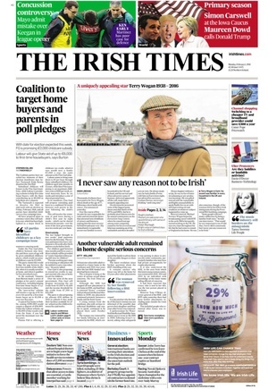 I didn’t expect better, I was wondering what they would put on the Oirish version, and it seems to be some daft tripe about twitter users spelling Wogan’s name wrong.