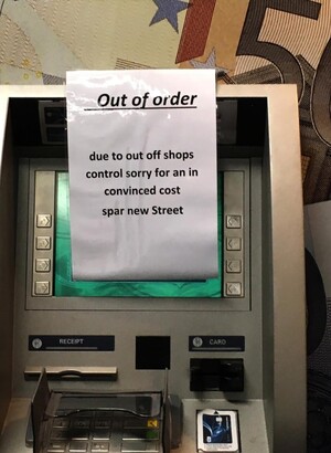 BLOOZECRUZ September 15, 2016 at 7:48 pm In fairness, it does say out of order. If you unscramble it, makes all the sense in the world. “Due to new cost control, Spar Street shops out of cod on the vine. Sorry.”