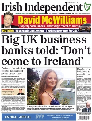 According to the Indo, cautious ‘officials’ are discouraging City investment banks from setting up their post-Brexit operations in Ireland: cue flood of high net-worth individuals clogging up the strip clubs and opium dens of Paris and Frankfurt. If there’s any truth to this story, our civil service is no longer fit for purpose.