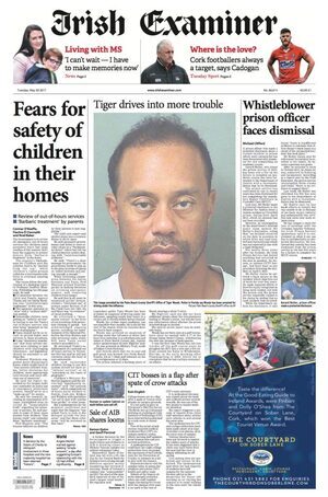 Strange sensationalist choice for the Irish broadsheets leading with Woods’ mugshot.