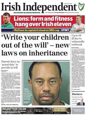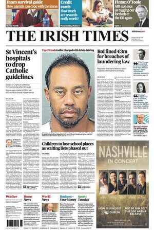 Woods is major (pardon the pun) news and Irish newspapers love sensationalism. Having said that, I’m surprised by the Irish Times stooping to that level.