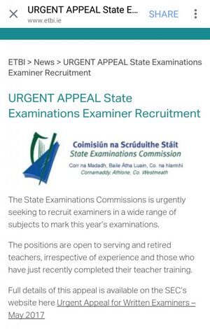 Seems the project management skills are exceptional in terms of the management of state examinations. Urgent appeal for Examiners ONE week before the exams start. Is there any good state agency operating in Ireland?