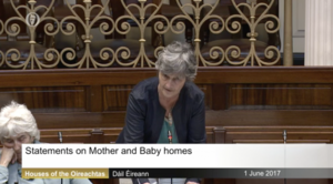“I think that is a shocking distinction, maybe I’m misreading it, perhaps you can explain it. I believe that you’ve taken that, inappropriately from the Mother and Baby Homes Commission of Investigation where the commission simply, in their interim report, and I believe the motivation for the interim report was to draw attention to the way that this government and previous governments have dealt with the mother and baby homes and left them outside of the redress scheme most unjustly.