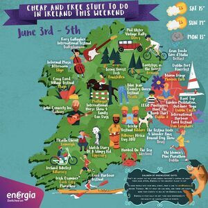 A Ireland map of Inexpensive stuff to do this June Bank Holiday weekend compiled by Energia and designed by Jennifer Farley.