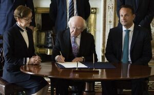 From left: Maire Whelan; President Higgins and Taoiseach Leo Varadkar