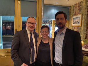 In that photo the minister looks like an estate agent selling the apartments to a pair of cash rich investors!