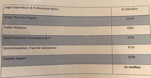 “Now I can categorically tell you that is not the case because I have been able to check figures and what I’m aware of is as follows, how that €1.5million is made up: the Olympic Council of Ireland got legal advice from Arthur Cox and Co solicitors, which cost them €400,000; they embarked on the Grant Thornton report which cost €214,000; they employed a technology company Espion which was nearly €40,000; they engaged with the Communications Clinic which was €80,000; and the report from Deloitte’s which was €18,000; and Wilson Hartnell, WHPR, €11,000. And that’s the bulk [€763,000] of that €1.5million.”