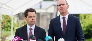 Northern Ireland Secretary James Brokenshire (left) and Irish Foreign Minister Simon Coveney following the breakdown of assembly talks yesterday