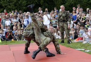 Revellers fall for the the Irish Defence Forces during its open day which included a display by the Black Knights (pics 1-3), hand to hand combat (pic 4) and, possibly controversial, junior target practice (above).