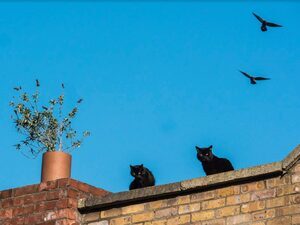 Two black cats in the morning means double bad luck. What kind of birds are they trying to scare?