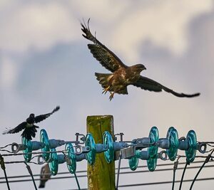 There’s a pair of magpies that regularly hassle a fox into leaving my garden. They’ll be on the ground and sneak up and either peck him or kick him and then run a couple of feet away. Works every time, brazen little feckers.