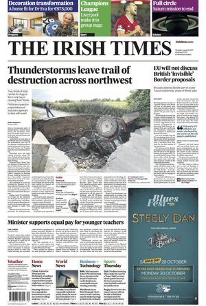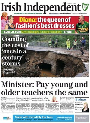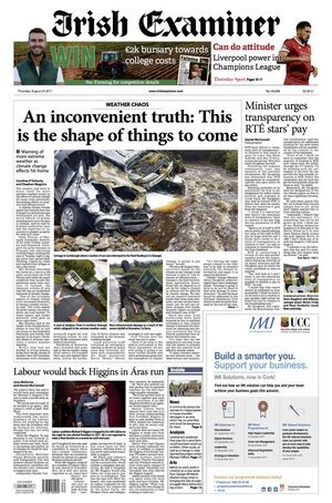 In the Irish Examiner pictures of the flooding, it appears to have rained so hard that the horizon is now at 45 degrees.