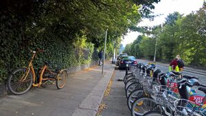 Beautiful trike and it’s worth bearing in mind that this is quite likely owned & operated by someone with mobility issues. This type of cyclist is often forgotten when it comes to things like “Cyclist Dismount” signs (they physically aren’t able), cycle parking (average Sheffield Stands aren’t wide enough to accommodate trikes or cargo bikes), and barriers such as the ‘kissing gates’ along the Royal Canal (which are a total impediment to anything larger than a regular bicycle, to which they are also a major inconvenience).