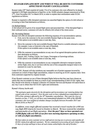 Notice on Ryanair’s website this evening