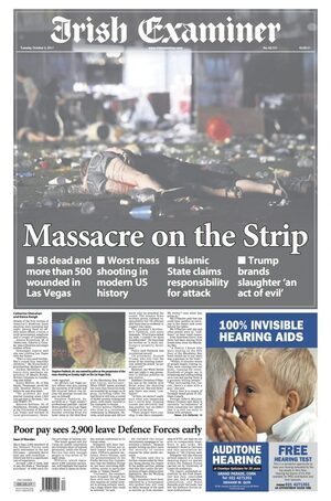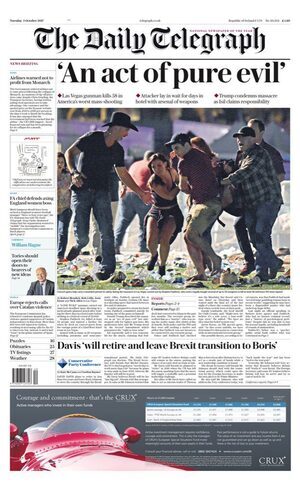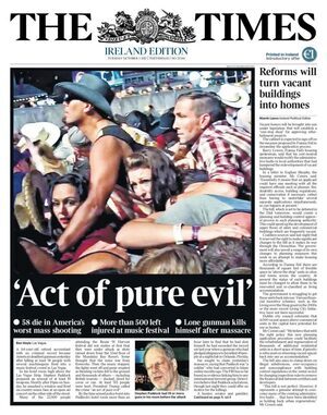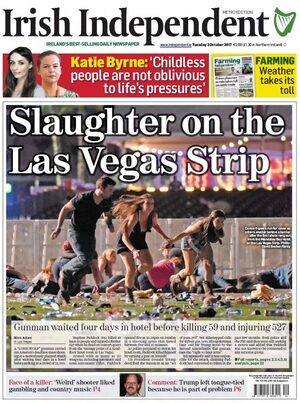 The 2nd Amendment to USA’s Constitution needs reflection. A deranged guy flies bullets freely in Vegas – JHC – it’s a massacre. It’s not a terrorist, it’s a guy with mental health issues, who can freely access automatic weapons. The U.S are busy looking without, perhaps they should look within.