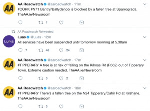The wrath of Ophelia unfolding on Twitter.