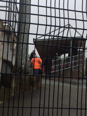 The stand has collapsed. And is pretty dangerous for the lads trying to brace it. @RTEsoccer @RTEsport pic.twitter.com/gGqsdFRYOj