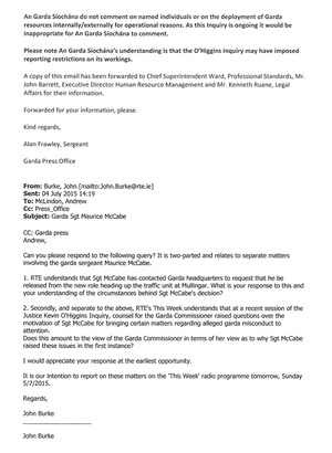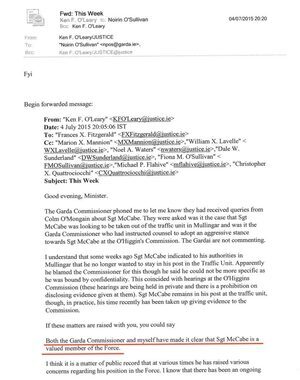 The complete exchange between the Department of Justice and the Minister for Justice’s office concerning the Garda Commissioner’s legal strategy against Maurice McCabe.