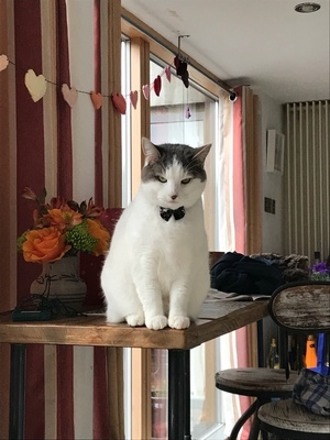 Maude unimpressed with her Christmas bow(tie)