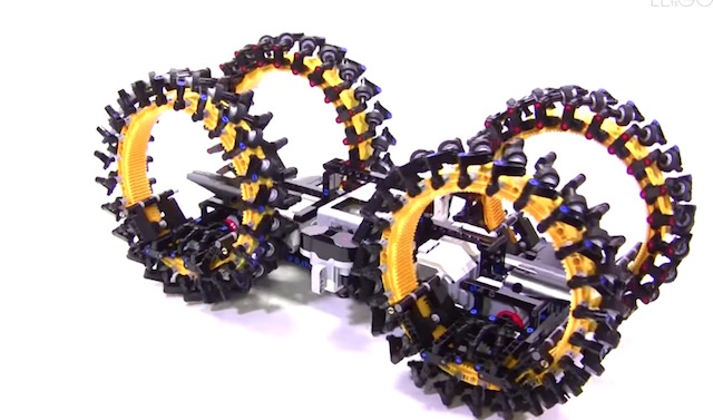 An ingenious motorised vehicle made by LEGO builder Yoshihito Isogawa that uses Mecanum wheels to move in any direction without a traditional steering mechanism.