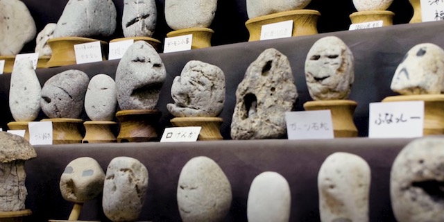 Chineskikan in the city of Chichibu, two hours outside Tokyo, is a museum dedicated to naturally eroded rocks that look like human faces – a institution wherein Yoshiko Hayama continues the tradition of jinmenseki with a collection of 1700 arguably face-like rocks handed down by her father.