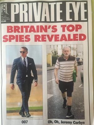 For Your Eyes Only Bodger at 10:32 am February 20, 2018 Ah here. Private Eye‘s latest cover. Context Thanks Bernard FacebookTwitterPinterestSponsored Link Related posts: Brand Endorsement For Those About To Vote Trailer Park 007™ Special: No Time To Die No Time To Watch Trailers