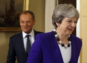 UK Prime Minsiter Theresa May with European Council President Donald Tusk in Downing Street yesterday.