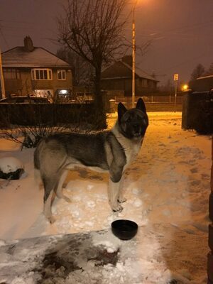 Looks like an American Akita. Beautiful animals. It’s not a language thing, they just don’t obey. They’d be impervious to the Strategic Communiation’s Unit. You have to ask, to persuade an Akita. They’re double coated and love the cold and the snow, the colder the better. They love their owners deeply and are intensely loyal, so hopefully it’s back home.
