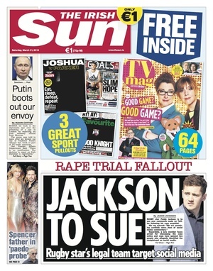 Gavin Elliott @sgelliott: #suemePaddy is trending in the number one spot. A remarkable achievement by Paddy Jackson’s legal team.