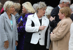 Former ministers and TDs gather after the funeral mass for Monica Barnes, who served as a Labour Party senator and Fine Gael TD during her political career.