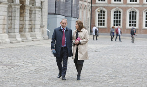 Sgt Maurice McCabe and solicitor Kathryn Ward arrive at Dublin Castle this morning.