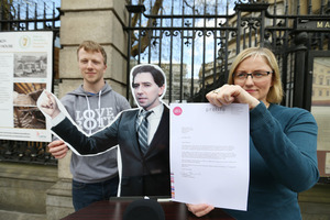 Cora Sherlock (right) outside the Dáil last month calling on the Minister for Health, Simon Harris to ‘honour his commitment’ to debate his abortion plans with the LoveBoth campaign. Ms Sherlock was a no show last night for an RTÉ debate with Mr Harris.